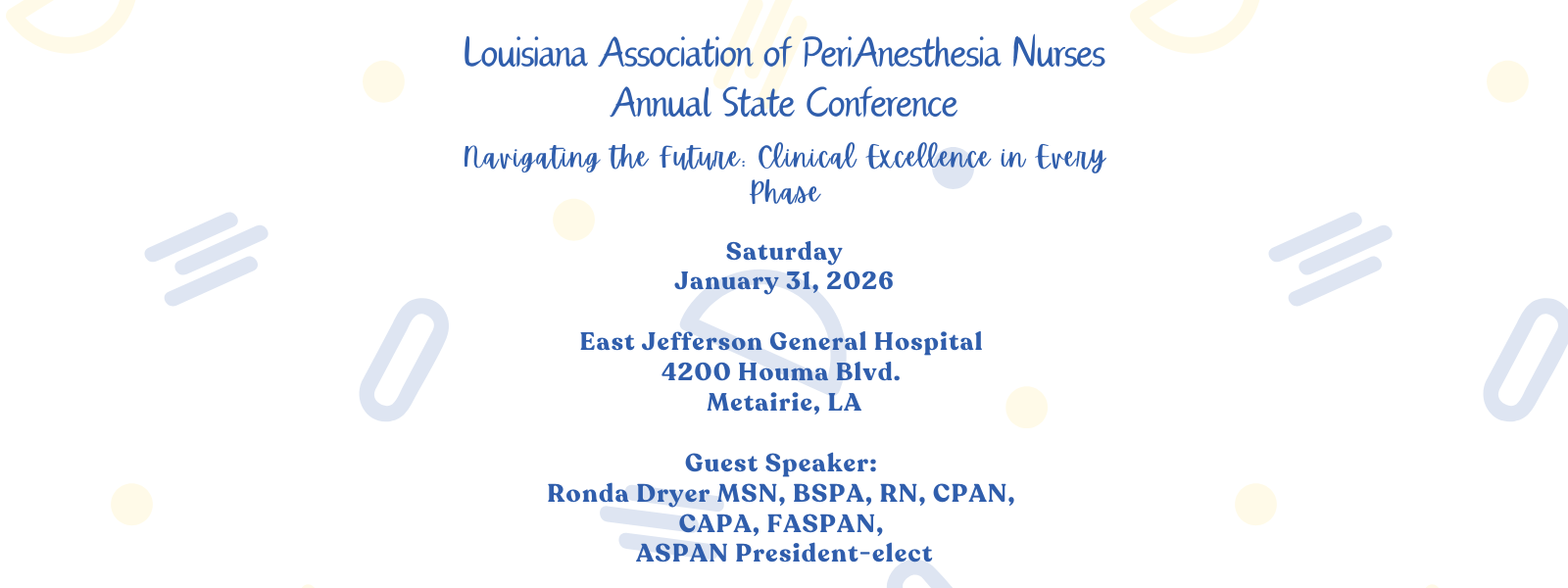 The LAPAN 2026 State Conference will be held on January 31, 2026, at East Jefferson General Hospital in Metairie, LA. More details will be...